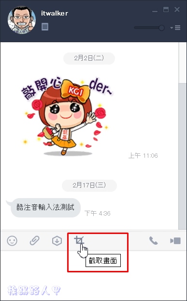 進入聊天室畫面,按下簡圖示(擷取畫面)按鈕,就可以準備開始抓圖。